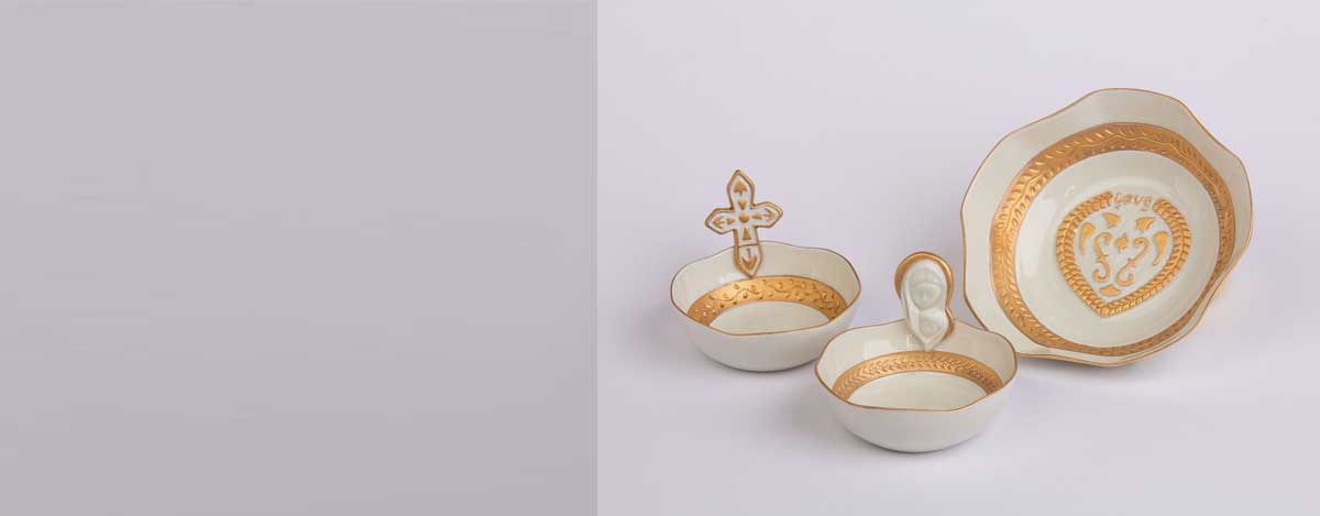 Love bowls, Cross bowls, and Ave Maria bowls remain popular gifts for weddings, birthdays, showers, and more. These pieces illustrate Pam’s signature style & technique.